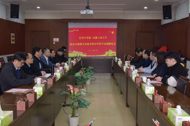 3月8日下午,beat365官网与东科半导体(安徽)股份有限公司举行校企共建联合实验室揭牌暨东科奖学金捐赠仪式。校党委常委、副校长曾杰,东科半导体(安徽)股份有限公司董事长谢勇、东科半导体(安徽)股份有限公司副总经理杨伟真、东科半导体无锡有限公司总经理赵少峰出席仪式,教务处、发规处、校友处、微电子与数据科学学院等部门负责人以及公司人力资源部相关人员参加仪式。