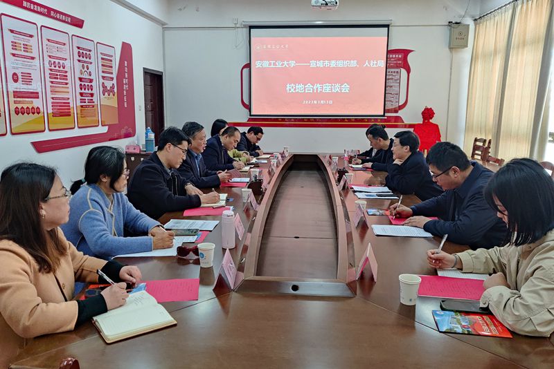 祖明对宣城市委组织部、人社局来校对接表示了热烈欢迎,介绍了学校的基本情况以及与地市的合作发展取得的成效。祖明指出,校地双方要努力推动合作机制衔接到位,保障校地人才合作精准匹配,强化校地、校企多方对接联系,真正实现人才共育与成果转化。
