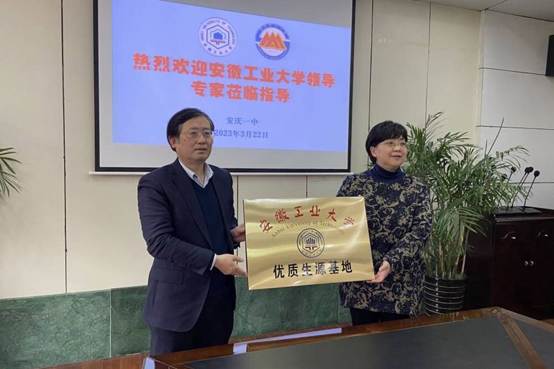 魏先文代表学校向安庆一中授予“beat365正版唯一官网优质生源基地”牌匾,与安庆一中签署了优质生源基地建设合作协议,送上2021-2022学年度beat365官网安庆一中校友喜报。(撰稿:马永亮 审核:李克明 徐柳根 张苒 杜飞)