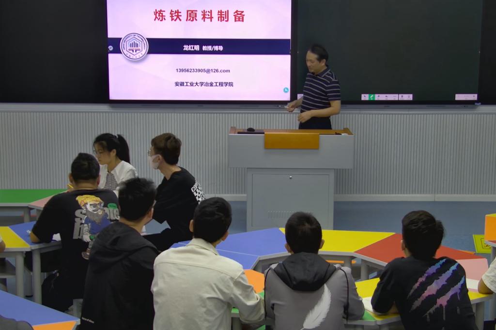 科学研究与课堂教学融汇。给学生一杯水,自己要有一缸水。科研水平提高了,眼界才会高,才能把最新、最前沿的知识传授给学生。龙红明先后主持国家自然科学基金、国家重大研发计划课题等国家级项目6项,安徽省杰出青年基金等省级项目10项、企业重大产学研项目12项,这些从科研中获得的新知识、新动态、新成果常被他带到教案、教材中去,成为鲜活的教学案例。在冶金“双碳”发展背景下,他带领课程团队围绕钢铁工业“碳中和、碳达峰”开发教育教学资源,开发了炼铁原料“双碳”相关科普视频材料、烧结工艺流程虚拟仿真3D场景动画等多媒体课件,显著提升了课堂教学效果,培养了同学们的专业兴趣。作为一名奋战在教学一线17年的教师,龙红明常与青年教师交流,督导、指正他们教学中的问题,鼓励坚守和践行教育理想,发挥“传帮带”作用。龙红明说,“什么都可以放弃,唯独课堂不能放弃,这是一个教师的根。”这是一名国家级教学名师的初心和坚守。