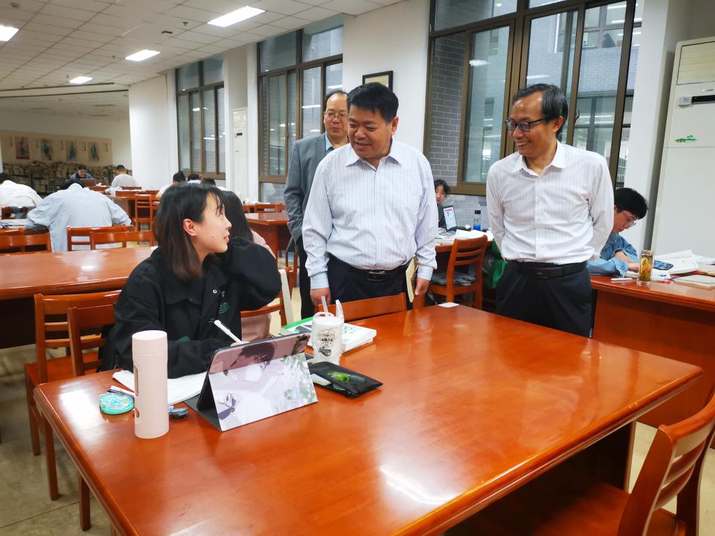 在图书馆阅览室,陆林深入查看图书资源建设、软硬件设施配备、馆藏文献管理等情况,指出图书馆在文化育人、教学科研中发挥着重要作用,要充分利用这一知识积淀和文化传播的平台,不断丰富和挖掘馆藏资源,积极举办各类讲座、文化展览、阅读推广活动,进一步融合新媒体技术,着力提升服务品牌的价值内涵,为广大学生提供更加多元化的优质阅读服务,为广大教师提供更加有效性的优质教学科研服务。在校园文具用品书店,陆林与店主亲切交谈,鼓励店主要拓展经营范围,为师生呈现更多更好的科技文化类书籍与产品,不断丰富师生精神文化生活,以更高的品味、更高的追求,为校园打造更多书香、更多雅致的文化景观。(撰稿:盛樟 审核:王成勇 张苒 杜飞)