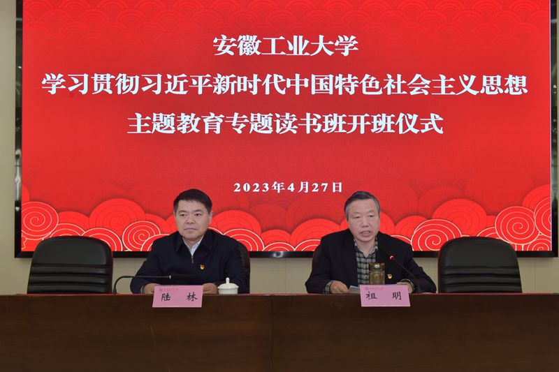 4月27日上午,学校领导班子学习贯彻习近平新时代中国特色社会主义思想主题教育专题读书班开班仪式在佳山校区会议中心举行。校党委理论学习中心组成员出席,校党委委员、纪委委员,各基层党委、党总支、直属党支部书记,机关各部门主要负责人,各学院院长,学校督导组组长列席。校党委书记陆林作开班讲话,校党委副书记祖明主持开班仪式。