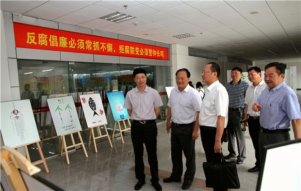 会后,滕祁源、王光虎一行参观了beat365官网第二届校园廉政文化作品展。 (文/汪芝泉 图/王旭东 审核:王俊 邹珏)