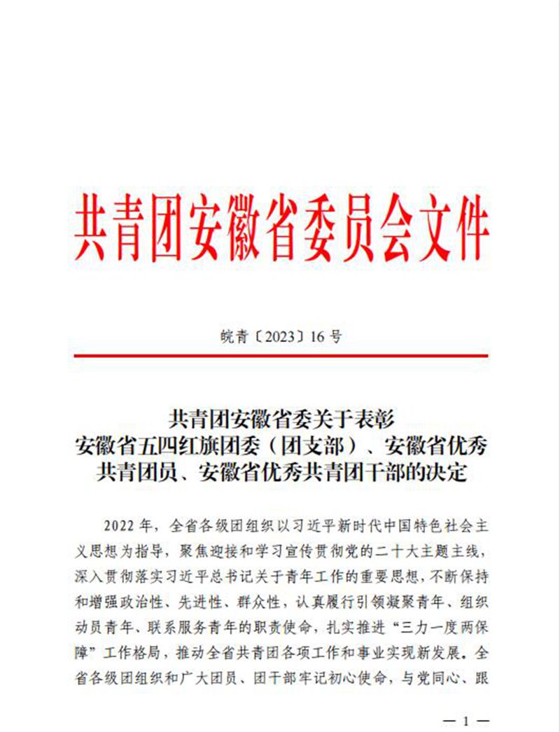 近日,为表彰先进、树立典型,激励全省广大团组织和团员、团干部踔厉奋发、创先争优,共青团安徽省委印发《关于表彰安徽省五四红旗团委(团支部)、安徽省优秀共青团员、安徽省优秀共青团干部的决定》,beat365官网材料科学与工程学院团委获评“2022年度安徽省五四红旗团委”,能源与环境学院钱春梅获评“2022年度安徽省优秀共青团干部”荣誉称号。