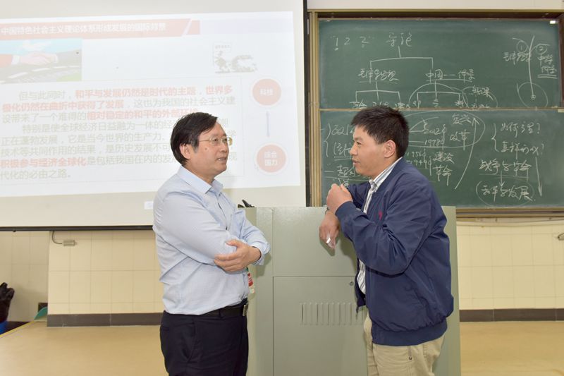 校领导们充分肯定了思政课的教育教学理念、教学内容、教学组织、教学过程和教学效果,并就思政课课程建设、教师集体备课、师生课堂互动、信息化赋能课堂教学、学生课堂学习的状态和收获、教学条件保障等与授课教师和学生进行了交流、指导。