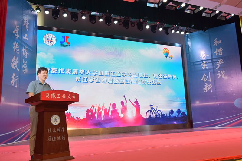 魏先文代表学校向圆满完成学业的毕业生表示祝贺,对机械工程学院2023届毕业生在思想引领、争先创优、科技创新等方面取得的优异成绩表示肯定。他以“踔厉奋发展风采,笃行不怠向未来”为题,寄语全体毕业生要以担当践行使命,争做“眼里有光”的开拓者,将自己的职业理想、学业理想和人生目标,同祖国的前途、民族的命运紧密联系在一起,主动担苦、担难、担重、担险,将安工大人的家国情怀和历史担当,浓墨重彩地写进中国式现代化的壮丽篇章。要以吃苦成就事业,争做“肩上有责”的奋斗者,学会运用习近平新时代中国特色社会主义思想的世界观和方法论,深刻领会“六个必须坚持”,精于工、匠于心、品于行,在立足本职的创新创造中不断积累经验、取得成果,成长为一专多能的复合型人才。要以感恩回馈社会,做“心中有爱”的奉献者,树牢正确的世界观、人生观和价值观,践行社会主义核心价值观,坚守道德底线和法纪红线,清白做人、干净做事,摆正个人与团队的关系,对单位和家庭尽责,心系母校、奉献国家。