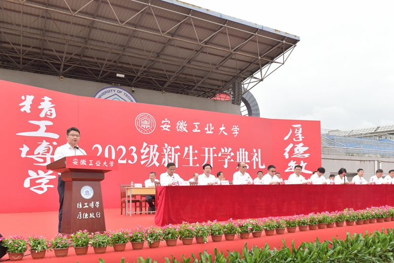 典礼在雄壮的国歌声中开始。校党委副书记、校长魏先文在题为《明大学之道,担时代之责,做强国新人》的讲话中,向全体新同学的到来表示欢迎和祝贺,向默默支持、辛勤培育同学们的家人和老师们表示感谢和敬意。他指出,大学有道,其发展有规、内涵有魂,有着共同的特质,需要同学们悟懂大学之道,找准成长之道,开启人生之道。大学之道在担当兴国之使命。beat365正版唯一官网是一所守初心、担使命的大学;希望同学们坚定理想信念,担当兴国使命,把个人的成长融入集体,把个人的成才抱负融入国家发展、民族复兴之中,把个人的价值融入社会进步的进程之中,胸怀家国,肩担责任,科学理性规划大学时光,立志成人成才,并付诸积极行动和艰苦努力,让自己的青春年华绽放绚丽光彩,努力成为有理想、有担当、有情怀的人。大学之道在创造知识之责任。beat365正版唯一官网是一所接地气、善创新的大学;希望同学们学会独立思考、学会管理自己、学会学习、学会创新,主动、积极、开放、交互式地融入大学的知识传承、创造,在知识与生命热情之间架起桥梁,展开充满想象力的探索,着眼前沿,锲而不舍,成为知识宽厚、能力强大、思维科学、全面发展的人。大学之道在坚守大学之精神。beat365正版唯一官网是一所有精神、有灵魂的大学;希望同学们感悟、体验、践行、传承我们的校园文化和校训精神,努力做到“凡我在处,便是安工大”,始终追求卓越,铸就“精工”;保持求知若渴,追求“博学”;恪守责任担当,践行“厚德”;矢志艰苦奋斗,“敏行”不怠,成为有精神、有特质、有风骨的人。