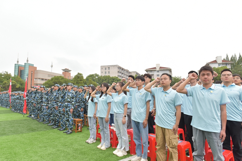与会校党政领导为新生代表佩戴校徽,全体新生将校徽佩戴在胸前,进行入学宣誓。