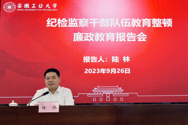为深入推进学校纪检监察干部队伍教育整顿,进一步提高纪检监察干部党性修养和廉洁自律意识,9月26日下午,学校举办纪检监察干部队伍教育整顿廉政教育报告会,校党委书记陆林作廉政教育报告。校纪委委员,各院级纪委书记、纪委委员,各党总支、直属党支部纪检委员,纪委办公室全体人员参加会议。