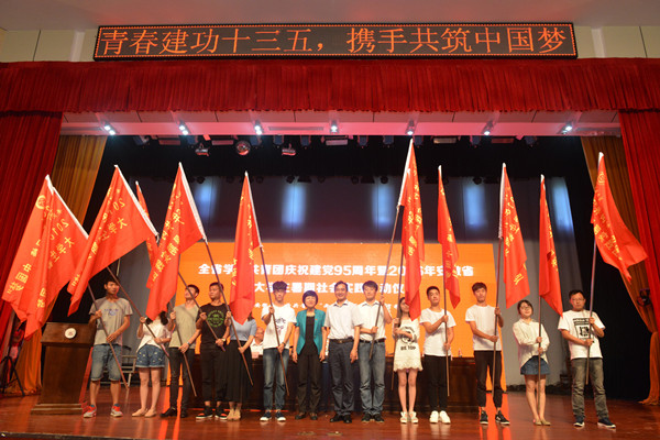 陈润代表学校在仪式上致辞。他指出,社会实践活动为大学生成长成才提供了广阔的舞台,beat365官网历来重视大学生社会实践和志愿服务活动。近年来,beat365正版唯一官网着力构建课堂教学、素质拓展、社会实践“三个课堂”联动育人机制,致力于培养学生的社会责任感、创新精神和实践能力,大力倡导青年学子在社会实践中积极践行社会主义核心价值观,先后涌现出一批大学生先进典型。beat365官网多次被授予全国大学生社会实践活动先进单位,连年被评为全省“三下乡”社会实践活动优秀组织单位。今年,学校已组建大学生暑期社会实践团队132支,其中1支团队入选2016年“井冈情·中国梦”大学生暑期实践季专项行动团队,并获得全额资助。