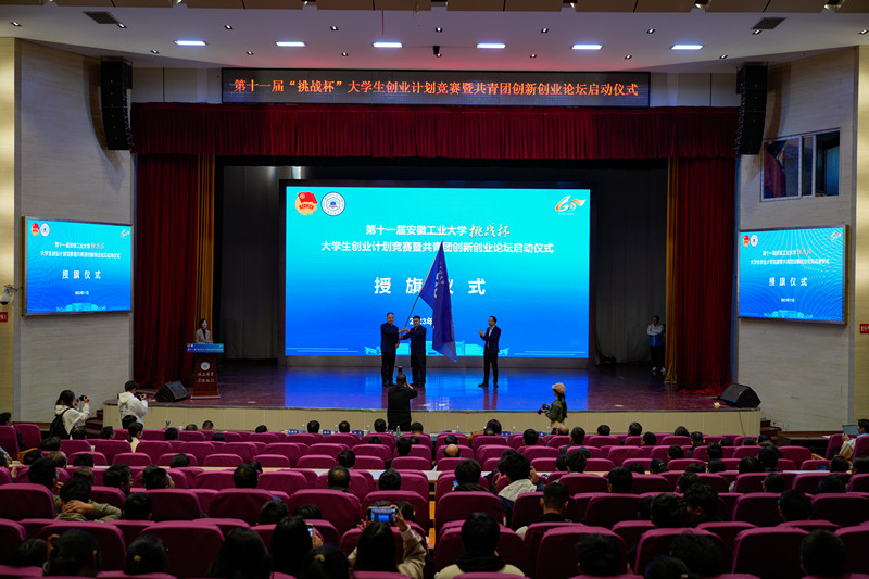 启动仪式上,师生共同观看了《挑战杯与工大的二十年》宣传片,建筑工程学院教师、安徽焓谷工程技术有限公司总经理李智虎,第十八届“挑战杯”全国大学生课外学术科技作品竞赛红色专项赛安徽省一等奖、国赛二等奖团队代表、化学与化工学院李春普同学分享了自己与“挑战杯”的青春故事。第十八届“挑战杯”全国大学生课外学术科技作品竞赛国赛一等奖、管理科学与工程学院团队代表,第十三届“挑战杯”中国大学生创业计划竞赛国赛二等奖、材料科学与工程学院团队代表进行了项目路演展示。陆林向本届赛事承办单位计算机科学与技术学院授予“挑战杯”竞赛会旗。