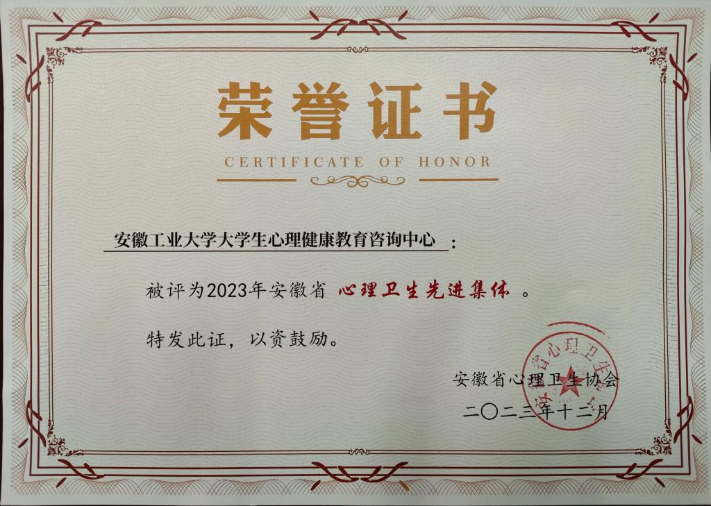 12月1日至3日,(中国)华东心理卫生联盟学术交流会暨2023年安徽省心理卫生协会学术年会在蚌埠召开。会议表彰了全省心理卫生工作领域先进集体和个人,beat365官网获评“2023年安徽省心理卫生先进集体”,beat365官网连续四次获此荣誉。