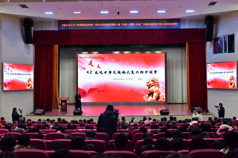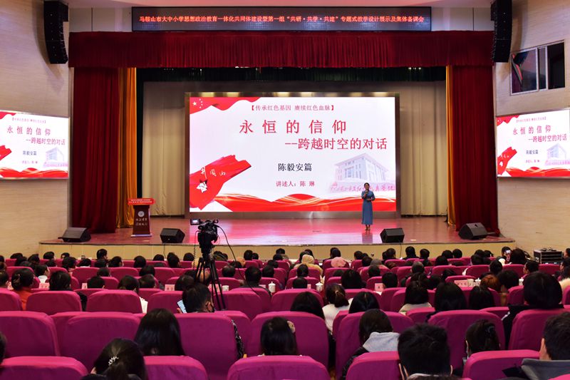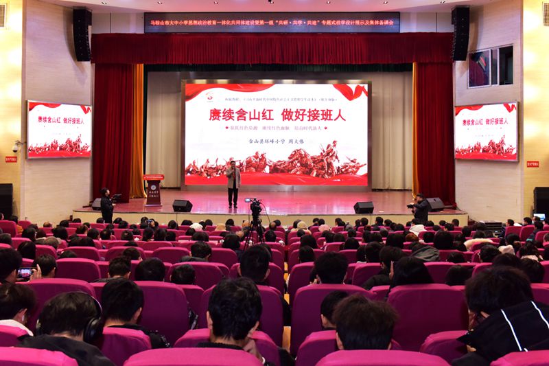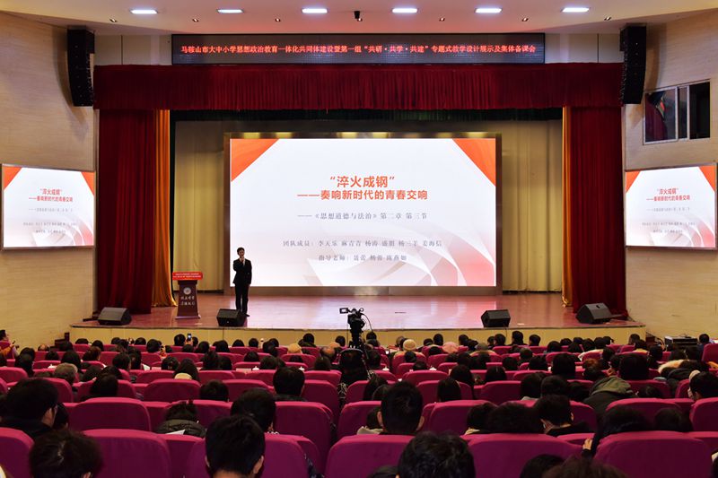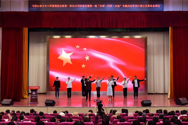 12月11日下午,马鞍山市大中小学思想政治教育一体化共同体建设暨第一组“共研·共学·共建”专题式教学设计展示及集体备课会第一期活动在秀山校区大学生活动中心举办。