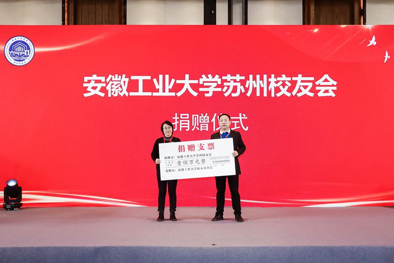 苏州校友会向母校捐赠100万元,顾明言代表母校接受捐赠。