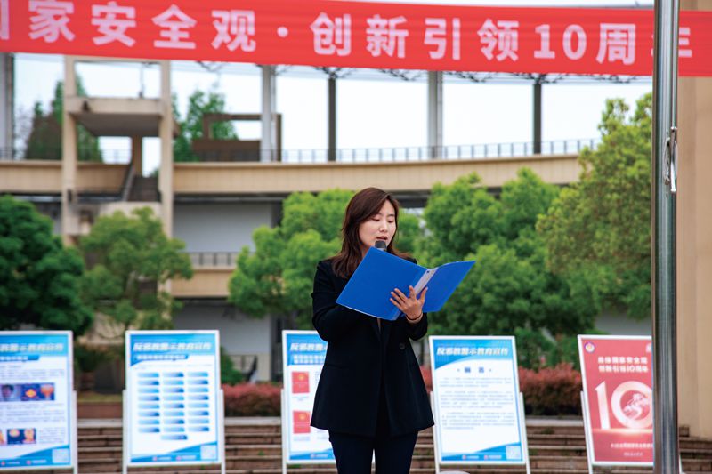 在第九个全民国家安全教育日到来之际,4月15日上午,beat365官网在秀山校区教学楼广场举行“总体国家安全观,创新引领10周年”主题升旗仪式暨国旗下的思政课活动。马鞍山市国家安全局、市公安局和雨山分局负责人,校党委宣传部、学生工作部、安全保卫部、团委负责人,校园警务站民警以及300余名师生代表参加。活动由化学与化工学院承办。