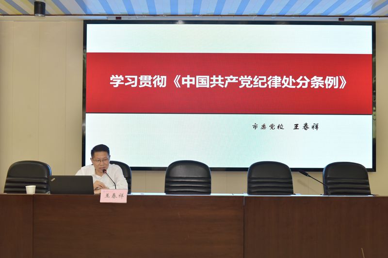 开班式邀请了马鞍山市委党校党史党建研究室主任王春祥副教授对新修订的《中国共产党纪律处分条例》(以下简称《条例》)作专题辅导。王春祥从“党纪学习教育”的背景和任务、《条例》的主要内容、践行《条例》的实践做法三个方面,结合高校实际对《条例》作了详细解读。(撰稿:王姣姣 审核:张苒 黄敏)