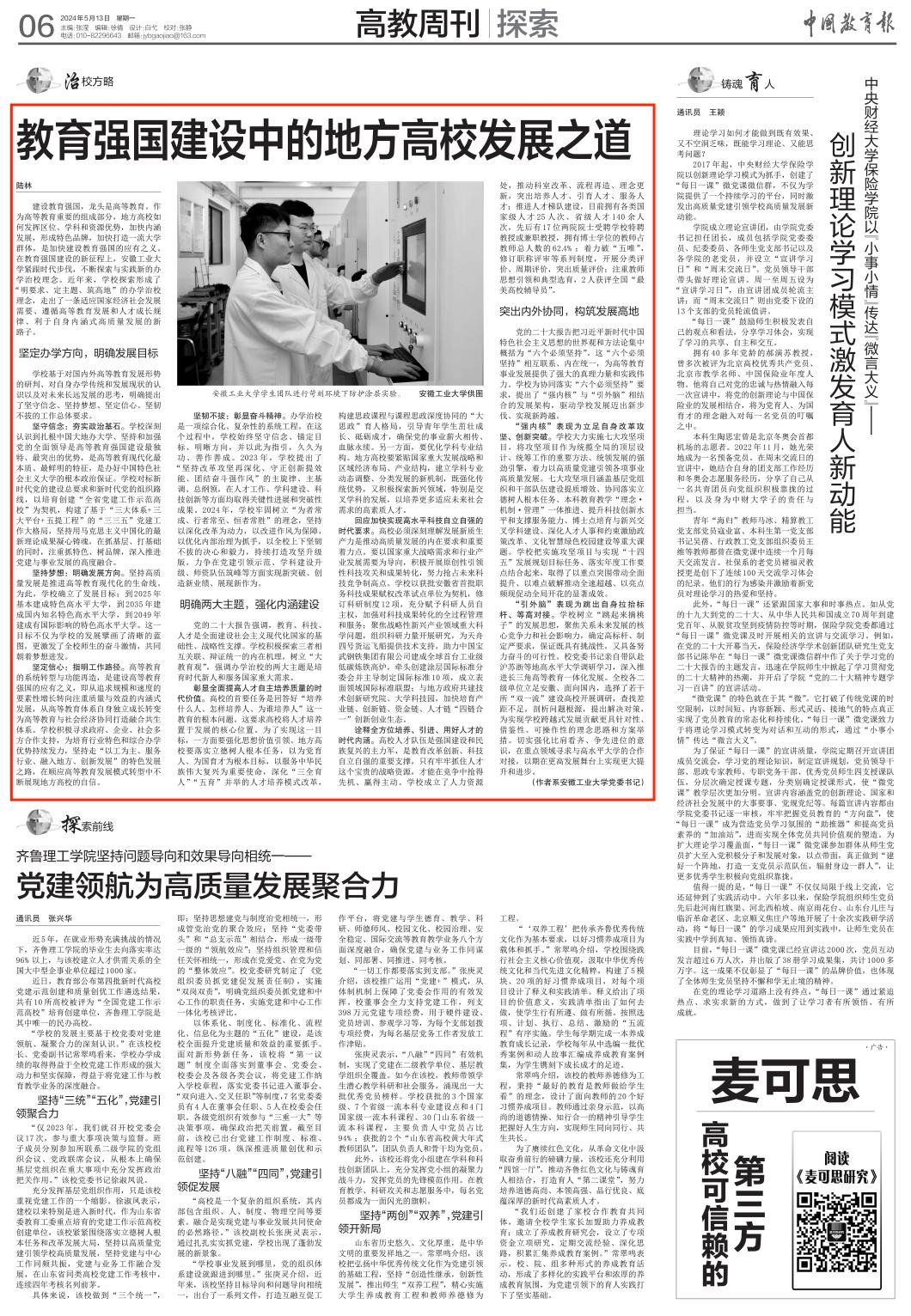 5月13日,校党委书记陆林在《中国教育报》“高教周刊”版面“治校方略”专栏发表署名文章《教育强国建设中的地方高校发展之道》,为迎接学校第五次党代会胜利召开凝聚奋进力量。