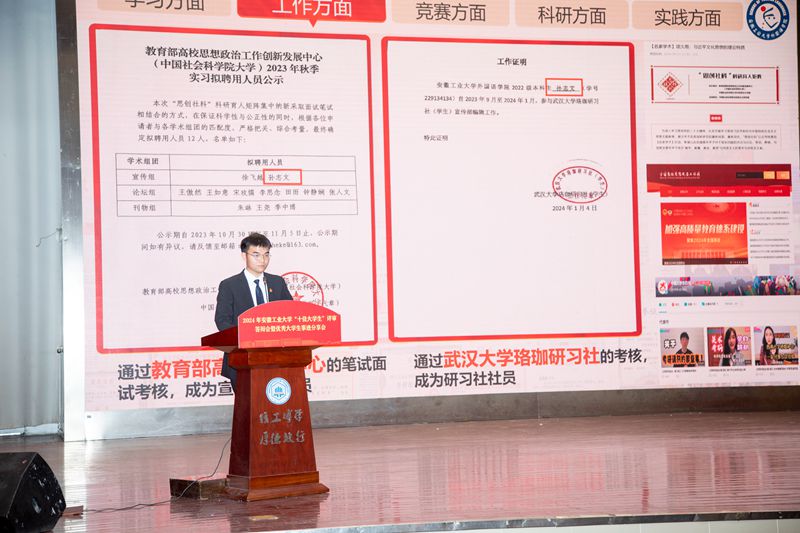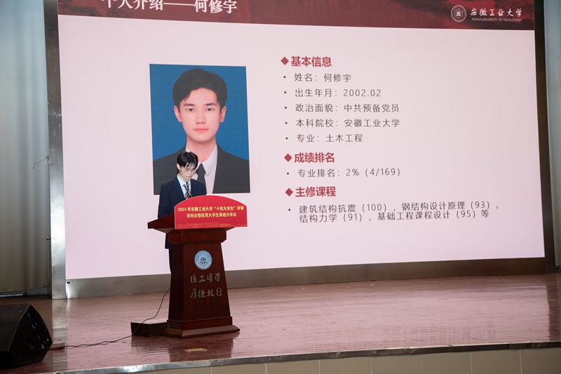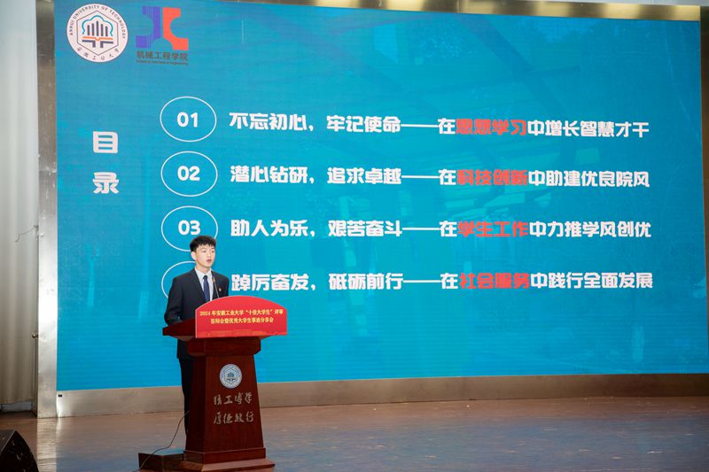 学校精心组织、广泛动员、营造氛围,各学院高度重视、强化宣传、认真选拔,经过个人申请、学院推荐、专家评审,来自14个学院的18名同学进入答辩环节。候选人围绕思想引领、专业学习、创新创业、社会实践、志愿服务、文化活动、就业升学等方面介绍了大学奋斗的故事,从容应对评委老师提问,充分展示了安工大青年开拓进取的精神风貌和矢志奋斗的青春担当。经过激烈的角逐,材料科学与工程学院张泽等10名同学获评beat365正版唯一官网2024年“十佳大学生”荣誉称号,化学与化工学院李春普等10名同学获评“优秀大学生”荣誉称号。