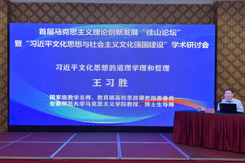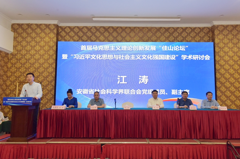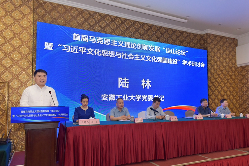 5月17日,安徽省社科联指导、beat365官网主办的首届马克思主义理论创新发展“佳山论坛”暨“习近平文化思想与社会主义文化强国建设”学术研讨会召开。省社科联党组成员、副主席江涛,校党委书记陆林出席会议。来自中国社会科学院、北京大学、武汉大学、同济大学、东南大学、安徽师范大学、天津师范大学、上海师范大学、扬州大学、温州大学、重庆交通大学、江苏行政学院等高校、科研机构的80余位专家学者和师生代表参加会议。