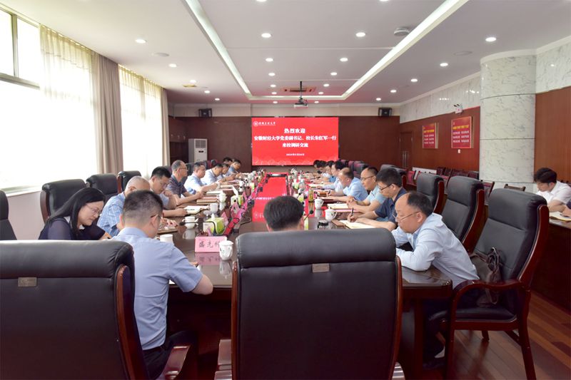 5月24日上午,安徽财经大学党委副书记、校长朱红军,党委常委、副校长王兵一行来校调研交流。校党委副书记、校长魏先文,校党委常委、副校长王先柱出席座谈会。安徽财经大学党政办公室、人事处、教务处、发展规划处、研究生院、继续教育学院、科研处、图书与信息中心(图书馆)、后勤管理服务中心,以及beat365官网党办校办、人力资源处、发展规划处、教务处、科研处、信息化处、继续教育学院、后勤处等部门负责人参加座谈会。会议由王先柱主持。