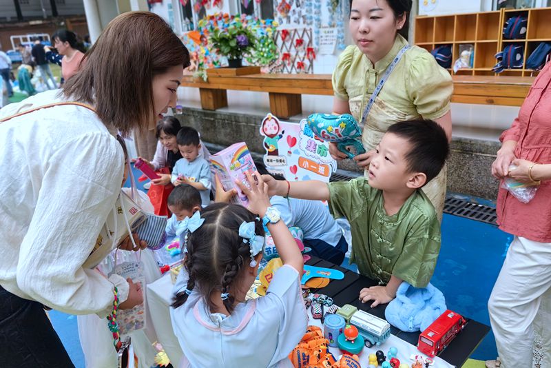 顾明言一行查看了幼儿园的园区环境和硬件设施,详细了解教育教学组织、师资队伍建设、保育安防工作等情况,询问目前存在的困难和问题。顾明言一行走进各个教室、活动室,与孩子们亲切互动交流,祝愿小朋友们节日快乐、健康成长。