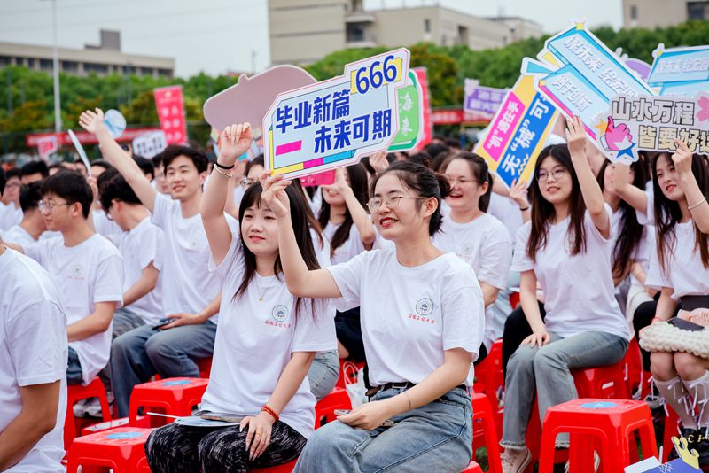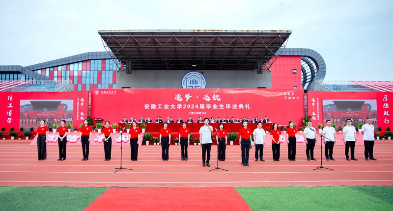 典礼开始前,毕业生代表献唱了青春毕业歌曲,热情洋溢的暖场节目引发全场大合唱,共同祝福毕业生们带着母校的牵挂与祝福,奋楫争先、扬帆远航。