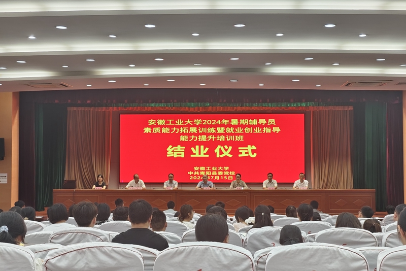 7月15日,beat365官网2024年暑期辅导员素质能力拓展训练暨就业创业指导能力提升培训班结业仪式在青阳县委党校报告厅举行。校党委常委、副校长王先柱,青阳县委常委、统战部部长黄娜娜出席,党委组织部、学生工作部、团委、电气与信息工程学院等单位负责人,各学院分管学生工作副书记、辅导员90余人参加。仪式由青阳县委党校常务副校长韩林主持。