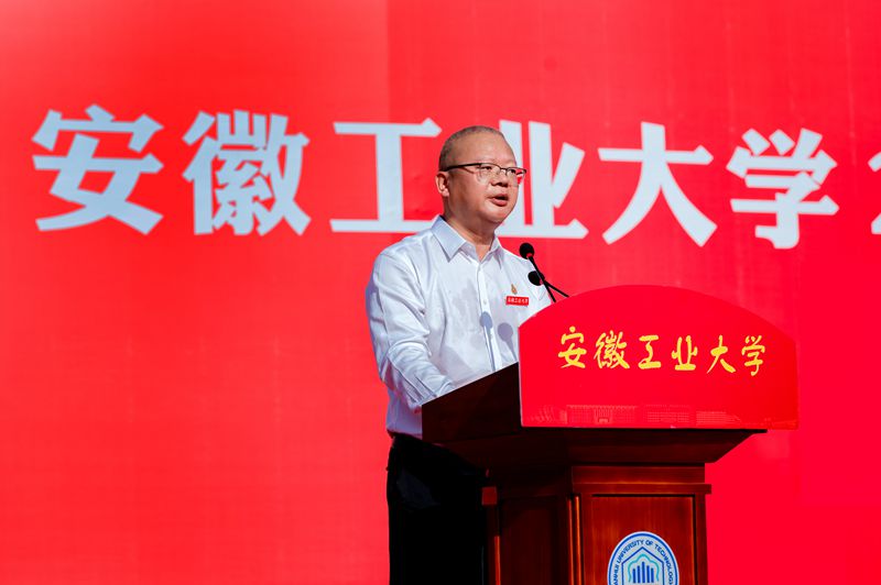 典礼在雄壮激昂的国歌声中拉开序幕。校党委副书记、校长魏先文在题为《让精神之光在心中闪耀》的讲话中,向全体新同学的到来表示欢迎和祝贺,向一路走来关心关爱同学们成长发展的家人和老师们表示感谢和敬意。他指出,青年学子在大学要积极传承、弘扬和践行精神品质和精神力量。坚持溯本源,在马克思主义理论中探知精神的基本涵义,对精神的探寻体现人们对生命之本的理性沉思与智慧向往,同学们要挺起精神脊梁,赋予自身以坚持不懈的信念、战胜困难的决心、力争上游的勇气和一往无前的动力。坚持循正道,在马克思主义中国化时代化的历史进程中感悟精神的力量,以伟大建党精神为源头和底色的精神谱系为中华民族从站起来、富起来到强起来,迈向伟大复兴的光辉历程注入了强劲动力,同学们要激发斗志、点燃希望、成就梦想,促进个人在全面发展中实现人生价值,推动中国式现代化的复兴之路呈现出新的恢宏图景。坚持向未来,在青春奋斗的新起点上发扬安工大青年精神,来到安工大,意味着迈入了一个增长知识、启发思维、提升能力、拓展视野、塑造人格、规划职业发展的人生新阶段,希望同学们心中有责,贤者无私,发扬爱党爱国、强党强国的奉献精神;心中有墨,智者无惑,发扬笃志好学、格物致知的求索精神;心中有梦,勇者无畏,发扬争创一流、自强不息的拼搏精神;心中有爱,仁者无怨,发扬海纳百川、开放包容的合作精神,努力把自己塑造成马克思主义信仰坚定、中国特色社会主义信念坚定、中华民族伟大复兴信心坚定,可堪大用、能担重任的栋梁之材。