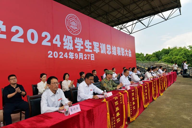 校党委副书记、校长魏先文作军训总结讲话。他代表学校向全体承训教官和工作人员表示诚挚谢意,向圆满完成军训任务的全体2024级新同学致以亲切问候,向在军训中受到表彰的先进集体和先进个人表示热烈祝贺。魏先文指出,开展军事训练是落实立德树人和强军目标的根本要求,接受军事训练也是国家法律赋予青年学生的一项义务。在半个多月的军训中,同学们不畏高温、不惧风雨,圆满完成各项军训任务,展现出吃苦耐劳、勇敢顽强、团结协作、勇于担当的精神。希望同学们巩固好军训成果,进一步厚植爱国主义情怀,以赤子之心笃定爱国之行;感悟吃苦耐劳精神,以无畏之心练就过硬本领;传承坚强不屈品质,以坚毅之心担当时代使命,在新征程上以青春之我践行强国誓言。