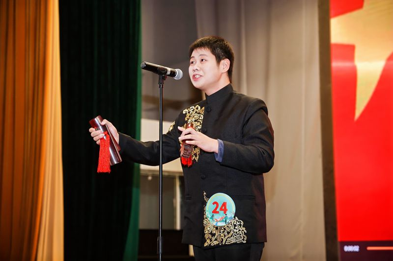 公共管理与法学院朱宇同学在宣讲中以采石矶为出发点,将文化历史与自然风光完美融合,在这片郁郁葱葱的土地上,诗仙李白吟诗作画,寄情山水,仿佛看见李白“登舟望秋月,空忆谢将军”的身影。他将采石矶的悠久历史,李白的豪情洒脱融入快板表演,让观众在欣赏快板的同时了解马鞍山文化。