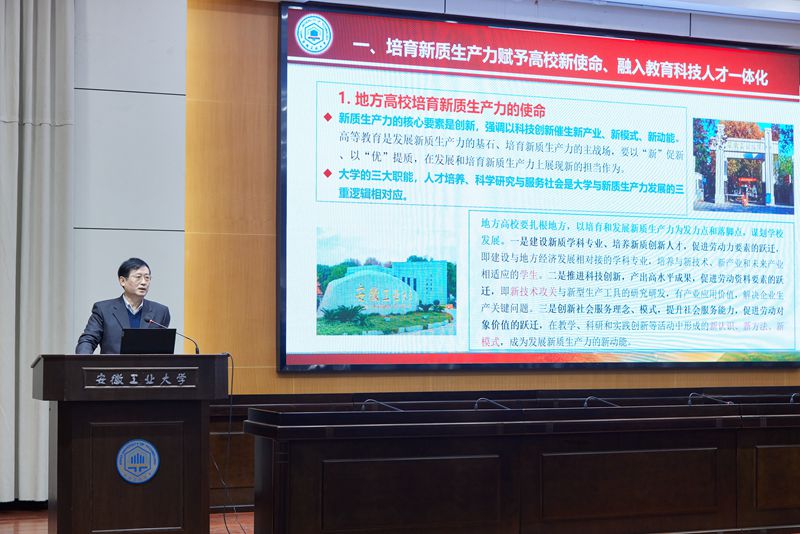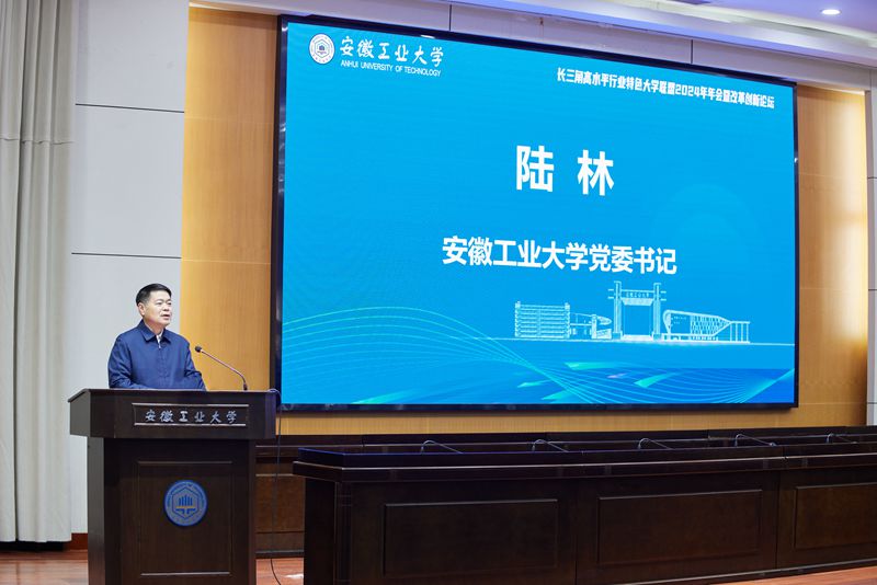 陆林代表学校对大会成功举办表示祝贺,对与会领导和专家表示欢迎,对联盟秘书处、兄弟院校和马鞍山市政府的支持表示感谢,并介绍了学校基本情况和办学成果。陆林指出,长三角地区聚集着丰富优质的高等教育资源,发展优势突出、前景广阔。行业特色大学因行业而生,因时代而兴,在改革发展的洪流中扎根行业土壤,彰显特色优势,为长三角一体化发展提供了坚实支撑。本次会议聚焦高等教育发展新模式、新动能、新优势,积极探讨行业特色大学发挥办学优势、强化创新攻势、塑造战略态势,为培育和发展新质生产力注入“源头活水”,形成学科群对接产业群、专业链对接产业链的发展新格局,是全面深度融入长三角一体化发展的具体行动,更是为教育强国建设贡献长三角行业特色高校力量的生动实践。我们要牢牢把握机遇,充分发挥学科、科技、人才、区位等综合优势,推进联盟高校的广泛深入合作,共建开放型、融合性协同创新体系,推动长三角一体化发展持续迭代升级,为教育强国建设和区域经济社会发展作出新的更大贡献。