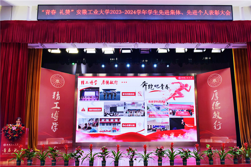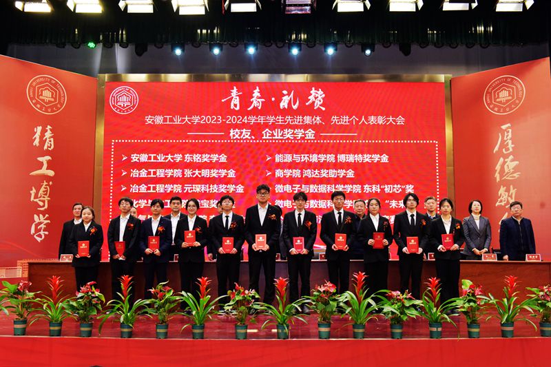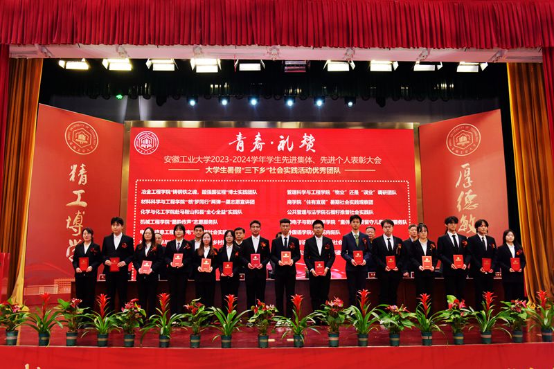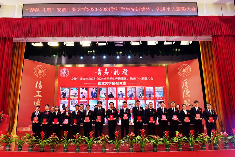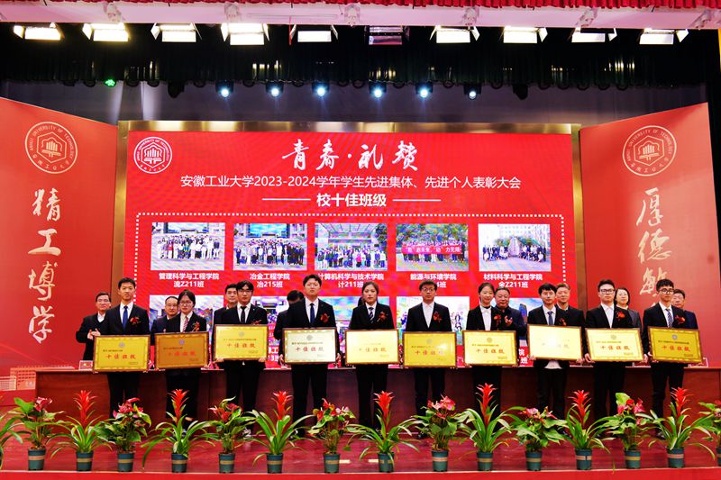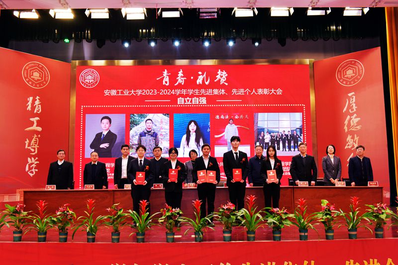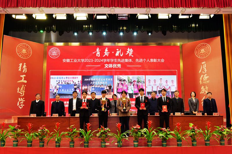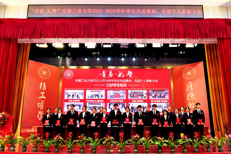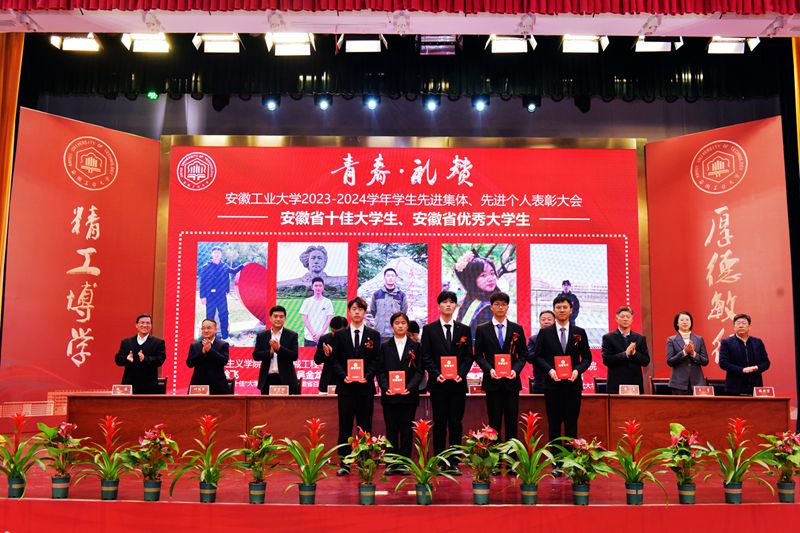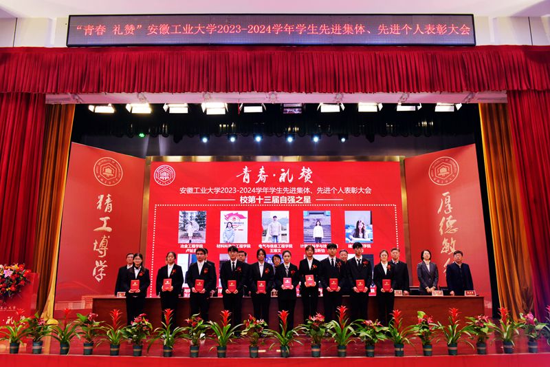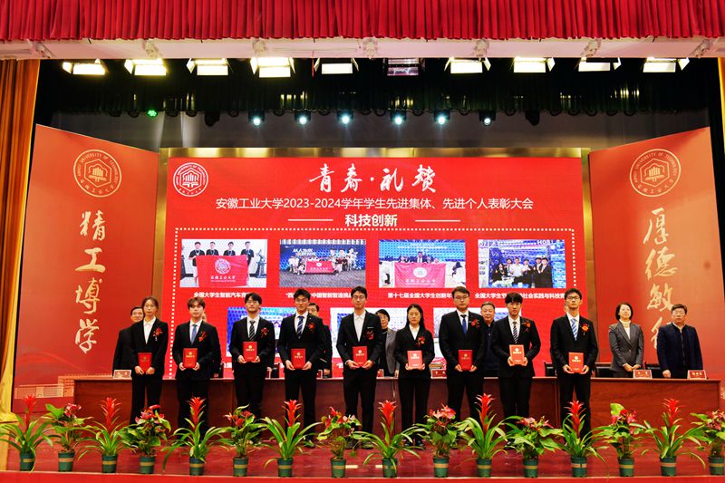 会上,校党委常委、副校长曾杰宣读了2023-2024学年学生先进集体、先进个人的表彰决定。校领导为校暑期社会实践优秀团队、校“十佳班级”、2023年度安徽省十佳大学生、2023年度安徽省优秀大学生、宝钢优秀学生奖、国家奖学金、国家励志奖学金、校“三好学生标兵”、校友企业奖学金,第六届“笔墨中国”汉字书写大赛安徽省预选赛一等奖、第六届“诵读中国”经典诵读大赛安徽省预选赛三等奖、2024年全国英语口语大赛安徽赛区三等奖、安徽省第八届校园阅读讲解活动三等奖、第二届“知图杯”安徽省高校师生信息素养大赛(本科生组)三等奖、第四届“用英语讲中国故事”大赛(高级阶段来华留学生组)全国二等奖,2024年安徽省学生体育联赛大学生羽毛球比赛男子甲组单打第一名、篮球比赛女子甲组第一名、田径比赛男子甲组4*100米第一名、田径比赛男子甲组4*400米第一名、网球比赛男子甲组单打第一名、网球比赛男子甲组双打第一名、网球比赛男子甲组团体第一名,2024年大学生学科和技能竞赛A类赛事国家一等奖、2024年中国国际大学生创新大赛金奖、第十四届“挑战杯”秦创原中国大学生创业计划竞赛银奖,校第十三届自强之星、2024年“市西53助学金”、2024年度“大学生年度人物”、第三批全国高校“百名研究生党员标兵”、2023-2024学年安徽省“大学生自强之星”等先进集体、先进个人代表颁发奖牌、证书。2023-2024学年,全校共有884个先进集体受到表彰,3513人次获各类奖学金,4469名先进个人获各类荣誉称号,在科创竞赛中斩获国际奖12项、国家级奖471项、省级奖1227项。