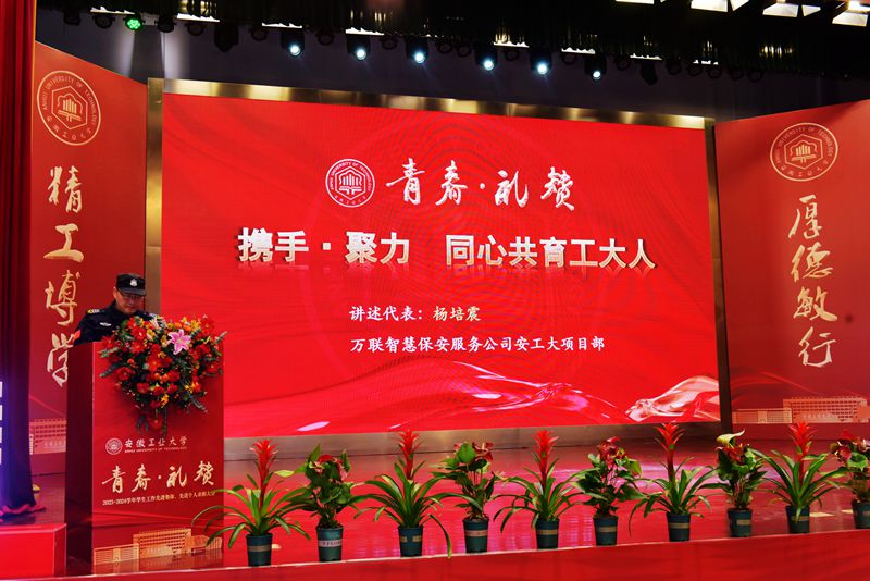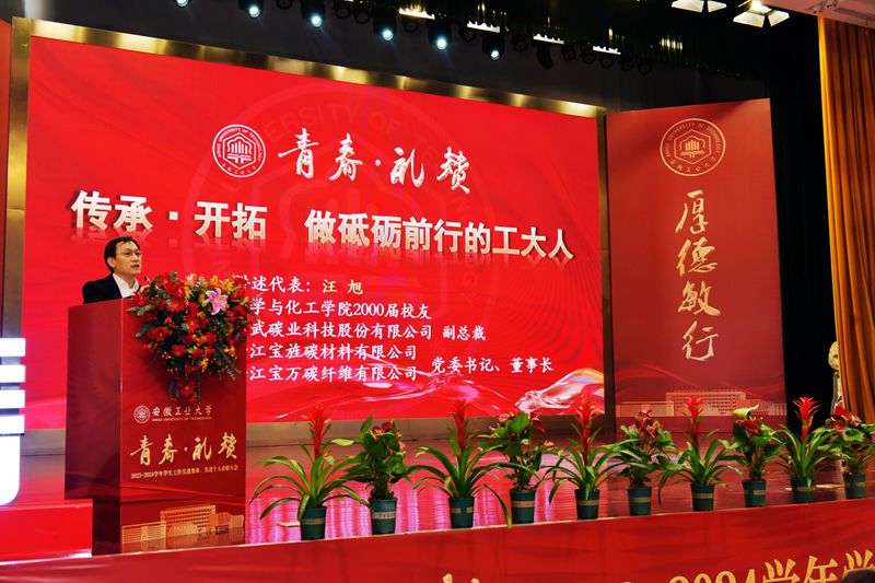 与会人员观看了学生工作专题片,专题片从思想引领、学风建设、竞赛实践、管理服务等方面展现一年来学校取得的丰硕成果,见证了全体学工人的坚定信念、过硬本领、扎实作风和深厚情怀。材料科学与工程学院学生方明代表分享了成长奋斗的历程;管理科学与工程学院流Z211班学生代表讲述了先进班级创建的主要事迹;化学与化工学院2000届校友、宝武碳业科技股份有限公司副总裁、浙江宝旌炭材料有限公司、浙江宝万碳纤维有限公司党委书记、董事长汪旭分享了求学成长的奋斗经历。万联智慧保安服务公司安工大项目部保安员杨培震讲述守护校园安全的一线故事。(撰稿:王心雨 审核:汪盛颜 王萌 赵龙 张苒 黄敏)