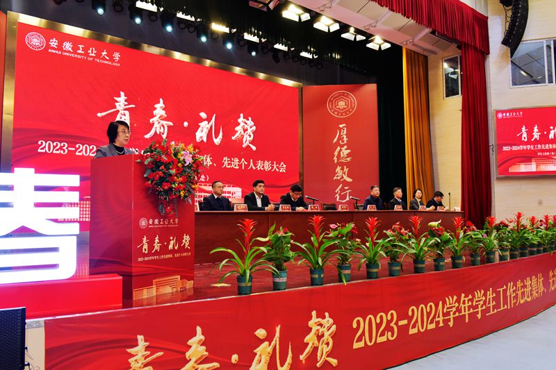校党委常委、副校长顾明言在讲话中充分肯定了一年来学生工作取得的成绩,向受到表彰的先进集体和个人表示祝贺,向全体教职员工表示敬意和感谢,号召全体安工大人以受表彰的先进集体和个人为榜样,始终保持勇往直前的奋斗姿态和昂扬向上的精神状态,在“可为”时代做“有为”青年,以更加优异的工作业绩和更加丰硕的发展成果绘就教育强国建设的青春壮丽画卷。她提出三点希望。一是希望同学们立报国强国之志,胸怀“国之大者”,做勇挑重担的“启航人”。要在百年复兴的进程中坚定理想信念,在时代变革的洪流中勇担创新使命,在砥砺奋斗中彰显人生价值。二是希望老师们践行教育家精神,潜心教书育人,做言传身教的“领航人”。要有育人育才的大德行,识变应变的大智慧,弘道弘文的大追求,勇担强国复兴、兴校荣校使命。三是希望全校上下聚焦立德树人,凝聚育人合力,做成才圆梦的“护航人”。要围绕完善人才培养模式抓改革,围绕推动制度机制建设强治理,围绕服务国家重大战略促发展,奋力谱写新征程上为青年学子砥砺成才、追梦筑梦、奋斗圆梦保驾护航的新篇章。