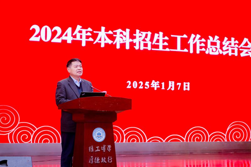 陆林充分肯定了过去一年的招生宣传工作取得的成绩,向受到表彰的先进单位表示祝贺,向全校各部门、各单位和全体教职工为此付出的共同努力、共同奋斗、共同奉献表示感谢。他指出,2024年招生工作取得的良好成效,得益于学校多年来在学科建设、师资队伍、科研创新以及校园文化等方面的深厚积淀和持续发展。当下学校正处于发展的关键时期,本科招生工作是重中之重,承载着学校发展的殷切期望,具有不可替代的基础性、支撑性与战略性价值,是学校各项事业蓬勃发展的起始点,是学校工作关键的“先手棋”,更是推动学科建设与改革的核心依据与强劲引擎,关乎学校的人才培养质量、学科建设水平以及社会声誉和影响力。