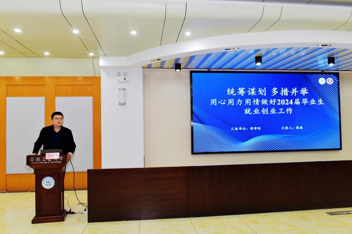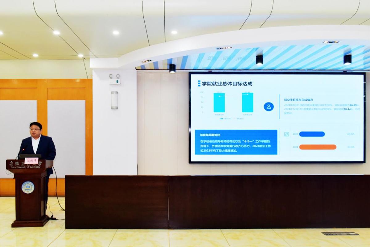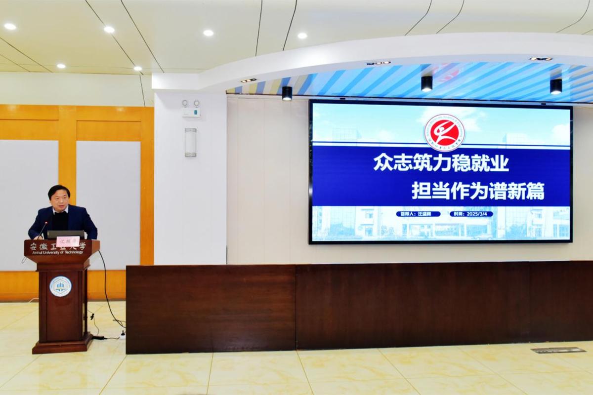 会上,陆林肯定了beat365官网2024年就业创业工作取得的显著成绩。陆林指出,就业是最基本的民生,事关人民群众切身利益,事关经济社会健康发展,事关国家长治久安。2025年全国高校毕业人数预计将达到1222万,面对依然严峻的就业形势,全校上下必须提高站位,充分认识到就业工作的重要性和紧迫性,以更加坚定的决心、更加有力的措施,全力推进2025届毕业生的就业创业工作。要加强组织领导,形成工作合力,建立“党委统一领导、党政齐抓共管、部门协同联动”的就业工作领导体制,各二级学院党政主要负责人要切实担负起本单位就业工作的第一责任人职责,发挥辅导员在大学生就业创业工作中的重要作用。要强化宣传指导,提升服务水平,树立“就业育人”的理念,加强就业创业政策的宣传解读工作,为学生提供全方位、多维度、立体化的就业创业指导服务。要实化工作举措,助推充分就业,深入落实《beat365正版唯一官网2025届毕业生就业创业工作实施方案》和《关于进一步加强2025年度毕业生就业创业工作的实施意见》,围绕“十个一”工作要求,持续开展针对性的促就业工作举措,全力推动学校毕业生就业创业工作再上新台阶。(撰稿:江若辰 审核:赵龙 张苒 黄敏)