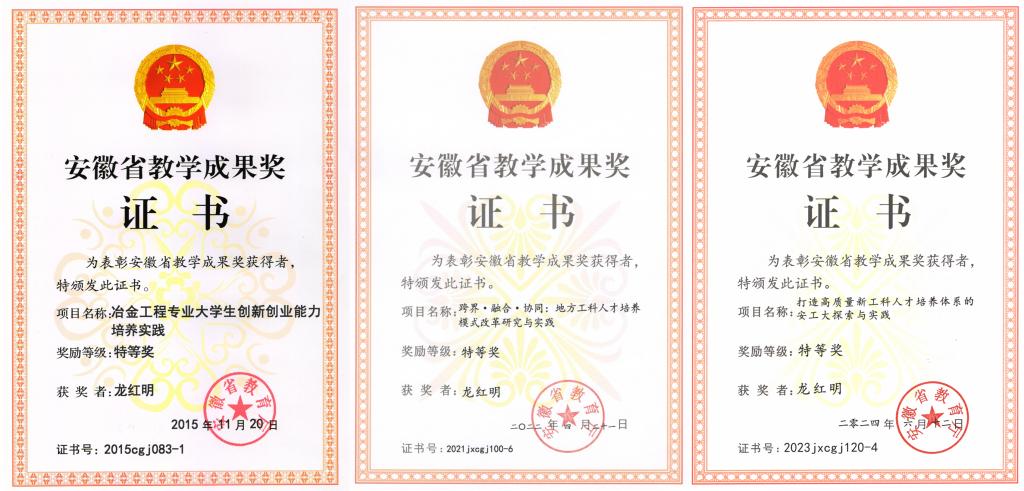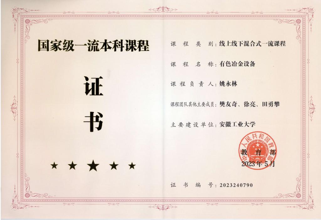 学院本科教育在教育部首批国家级新工科教学研究项目“面向新经济的冶金−材料专业链群改造升级的机制探索与实践”和多项安徽省重大教改项目研究基础上,着力构建以专业课程为核心的课程体系,以跨界理念、超前理念,建立以产业需求为导向的培养目标和课程体系动态调整机制,通过瞄准学科前沿改内容、学科交叉提质量,打造具备战略性新兴产业需求的“冶金+”多学科融合新课程体系,全力推动科研和教学的协调发展。主编教材《铁矿粉烧结原理与工艺》获全国冶金优秀教材二等奖,《炼铁原料制备与环保》教材入选全国首批冶金专业教材和工具书经典传承国际传播工程。《物理化学D》、《有色冶金设备》两门课程入选国家级一流本科课程。教学成果获安徽省教学成果特等奖3项、一等奖4项;获全国高校教师教学创新大赛一等奖1项、三等奖1项;获中国有色金属学会第三届NFSOC高等教育教学成果奖一等奖1项。