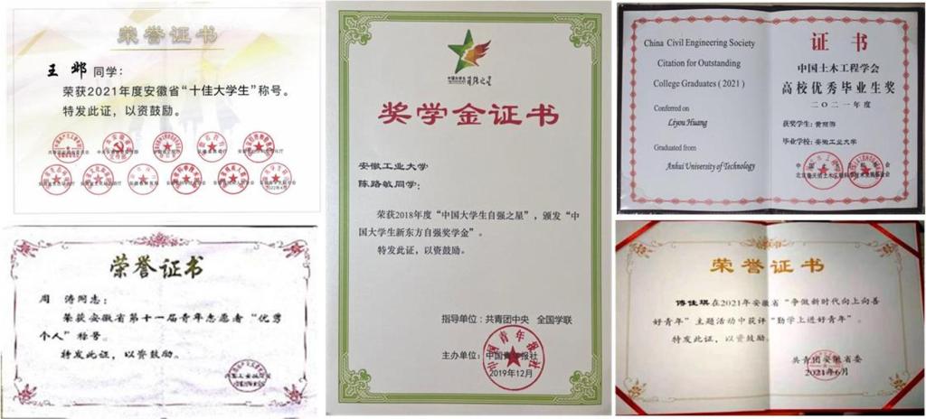 近年来,学院三全育人成效显著,通过了学校首批“三全育人”综合改革试点验收,涌现出“中国大学生自强之星”科创团体“啸”博士科创团队,安徽省优秀志愿者,安徽省优秀共青团员和安徽省“向善向上好青年”,安徽省“十佳大学生”,全国土木工程优秀本科毕业生等一批优秀学子。近五年,学院毕业生就业率稳定在96%以上,考研录取率26%左右,部分学生被清华大学、中科大、东南大学、哈工大、上海交大等名校录取。学生在“挑战杯”全国大学生课外学术科技作品竞赛、中国国际大学生创新大赛、全国大学生节能减排竞赛、全国大学生结构设计竞赛、“高教杯”全国大学生先进成图技术与产品信息建模创新大赛等创新创业赛事获国家级奖150余项。