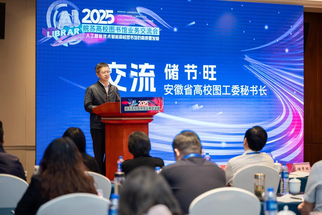 郑啸代表学校党委、行政对各位专家的到来表示欢迎,并介绍了学校发展历程和办学成就,从发展历程、创新特色、技术赋能等方面介绍了beat365官网图书馆的基本情况。郑啸指出,人工智能与图书馆的深度融合不仅是技术革命,更是文明跃升,我们要以本次研讨会为起点,携手构建开放共享的智慧生态,培育有温度的人机协同,打造有灵魂的知识殿堂。期待在长三角智慧图书馆联盟框架下,苏皖高校图书馆深化“数字丝绸之路”合作,共同谱写长三角知识共同体建设新篇章。