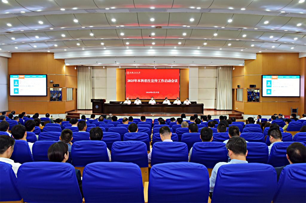 4月27日下午,学校召开2025年本科招生宣传工作启动会。校党委书记陆林,校党委副书记王俊,副校长郑啸,校党委常委、纪委书记、监察专员吴春雷,校党委常委、副校长闵凡飞、郑利平出席。全体中层干部、各教学单位招生宣传骨干教师、教务处科级以上人员参加。会议由郑啸主持。