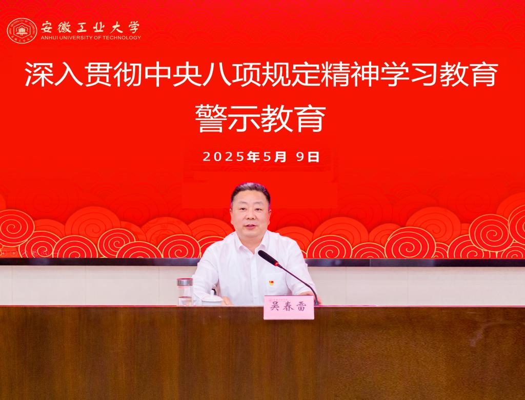 吴春雷围绕学习教育要求集中整治的11个方面突出问题,通报了典型案例,并就开展好警示教育提出要求。吴春雷指出,要提高政治站位,深刻认识警示教育的重要意义。要坚持以案为鉴,用足用好典型案例的警示教育作用。要强化行动自觉,将警示教育成果转化为高质量发展成效。切实做到以案说德、以案说纪、以案说法、以案说责,锲而不舍落实中央八项规定精神,持之以恒加强作风建设,以优良作风推动学校事业高质量发展。