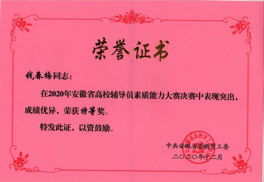 师资队伍水平上新高度。通过外引、内培的方式,师资水平有较大提升,近五年引进资格教授、资格副教授19人。目前有省学术和技术带头人3人、省级教学名师4人、省级教坛新秀3人、省级优秀辅导员1人、省杰出青年基金获得者1人。获安徽省“最美高校辅导员”称号1人,辅导员年度人物1人,宝钢优秀教师3人,获安徽省向上向善好青年称号1人。