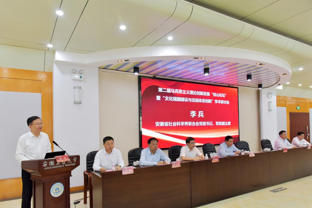 5月17日,第二届马克思主义理论创新发展“佳山论坛”暨“文化强国建设与话语体系创新”学术研讨会召开。校党委书记陆林,校党委副书记王俊,安徽省社科联党组书记、常务副主席李兵出席开幕式。来自浙江大学、武汉大学、中国科学技术大学、东南大学、南开大学、华东师范大学、华南理工大学、西北农林科技大学、苏州大学、合肥工业大学、北京理工大学、上海大学、南京师范大学、新疆大学等高校的专家学者、师生代表参加活动。开幕式由王俊主持。
