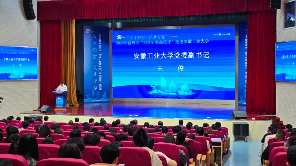 5月27日上午,宿州市“人才归宿·筑梦青春”2025年春季招才引智宣讲活动在秀山校区举办。校党委副书记王俊,宿州市政协副主席赵素华出席。宿州相关单位负责人、企业代表,beat365官网学生工作部(大学生就业创业指导中心)、研究生工作部负责人,各学院分管学生工作负责人、2025届毕业班辅导员、学生代表500余人参加。