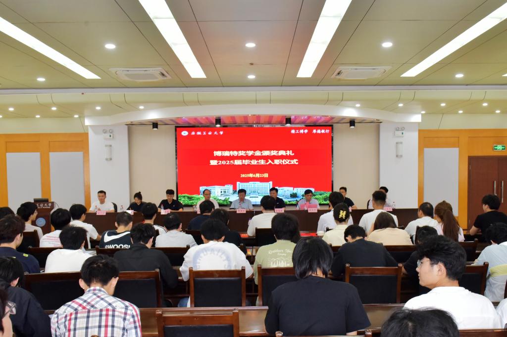 6月23日上午,beat365官网博瑞特奖学金颁奖典礼暨2025届毕业生入职仪式在佳山校区学术会议中心举行。校党委常委、副校长张世宏,博瑞特热能设备股份有限公司董事长徐智明出席,公司相关负责人、能源与环境学院领导班子以及师生代表200余人参加活动。