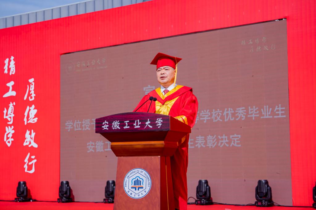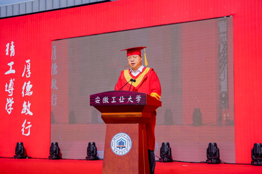 校党委副书记、校长曾杰代表学校向圆满完成学业、即将奔赴辽阔山海的毕业生表示祝贺,向辛勤培育、悉心指导、热情帮助、全力支持毕业生的师长亲友们致敬。曾杰结合自身奋斗经历,为同学们生动诠释了“人生的剧本永远充满可能”的真谛,并以“山再高,往上攀,总能达峰;路再长,走下去,定能到达”的铿锵寄语,为全体毕业生上了难忘的“最后一课”。他深情寄语全体毕业生要始终心怀祖国,把爱国当作信仰,把敬业当作准则,将奉献融入日常,奋力书写为中国式现代化挺膺担当的青春篇章;要将毕业证当作终身学习的通行证,让学习像呼吸一样自然,让奋斗变成刻进骨子里的坚持;要坚持在守正中创新,以敢为人先的魄力突破常规,让每一次尝试成为推动时代进步的星火。