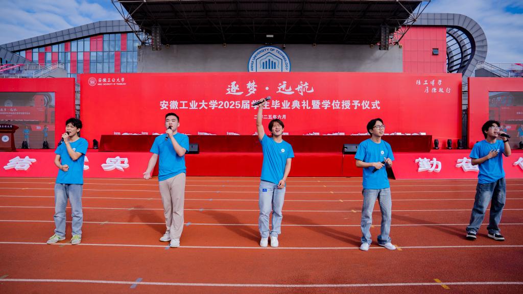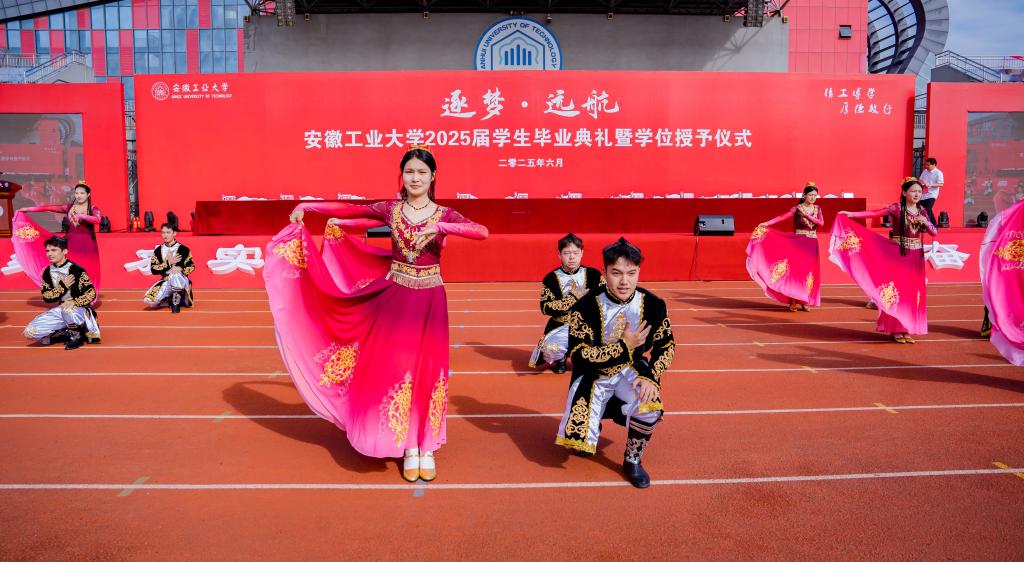 典礼开始前,暖场环节青春洋溢的毕业歌曲串烧引发全场大合唱,活泼优美的新疆民族舞表演带动大家随节奏律动。现场洋溢着欢乐氛围,共同祝福毕业生们奔赴山海、逐梦远航。