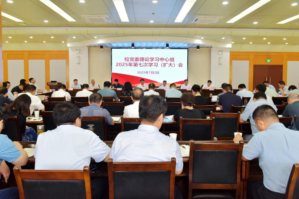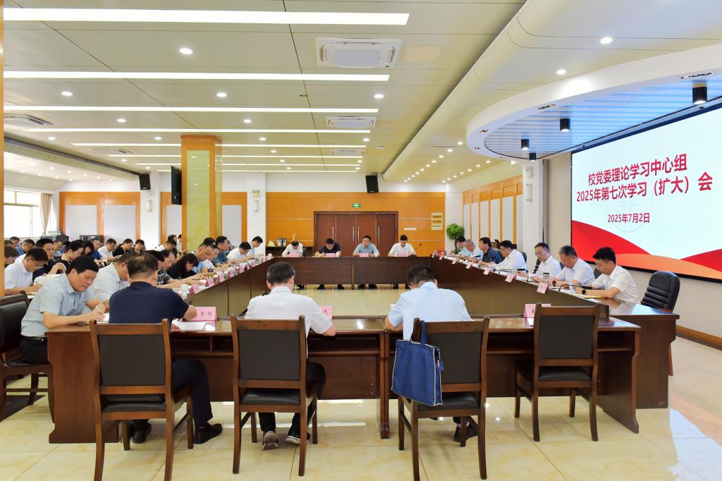 7月2日上午,校党委理论学习中心组召开2025年第七次学习(扩大)会,校党委理论学习中心组成员,校党委委员、纪委委员,各基层党委、党总支、直属党支部书记,机关各部门主要负责人,各学院院长参加会议。校党委书记陆林主持会议。