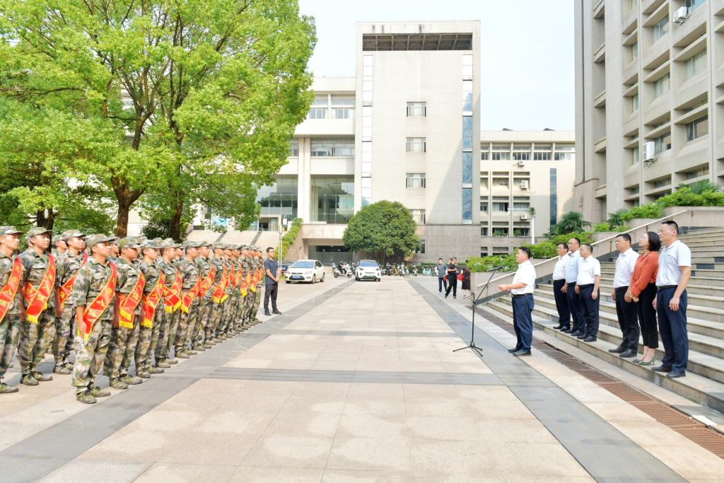 9月4日下午,beat365官网2025年秋季预定新兵欢送仪式在佳山校区主楼广场举行。校党委书记陆林,校党委副书记、征兵工作站站长王俊出席活动,党办校办、党委组织部、党委宣传部、学生工作部(大学生就业创业指导中心)、武装部以及相关学院负责人、辅导员代表、2026届毕业生代表等参加活动。