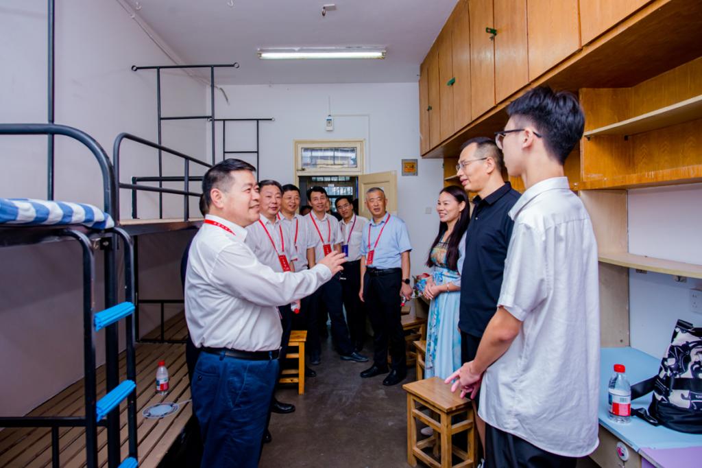 迎新期间,校党委书记陆林,校党委副书记王俊,校纪委书记、监察专员吴春雷,校党委常委、副校长闵凡飞、郑利平等校领导先后赴两校区报到点、学生宿舍和食堂检查指导,亲切慰问一线工作人员和志愿者,详细了解新生报到注册情况。校领导与新生及家长亲切交流,关心同学们入学适应情况,鼓励大家积极调整状态,尽快融入大学学习生活。校领导还走访了电气与信息工程学院、能源与环境学院、管理科学与工程学院、微电子与数据科学学院等新生宿舍,为家庭经济困难学生送上书籍、学习用品和定制保温杯等暖心礼包,勉励他们珍惜时光、勇敢追梦。